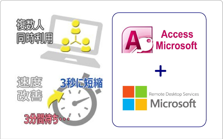 複数人同時利用のAccess(データベースソフト)でも仮想化で全く遅くならず 代理店業 クラサバのOffice Access基幹業務システムを、oneSoft(Remote Desktop ServicesでRemoteApp接続)に移行 ここが違う!ウチのアプリケーション仮想化「oneSoft」 ⅣoneSoft 〈 二<ソフトウェア>タイプ 〈 oneCLOUD oneCONNECTとは?