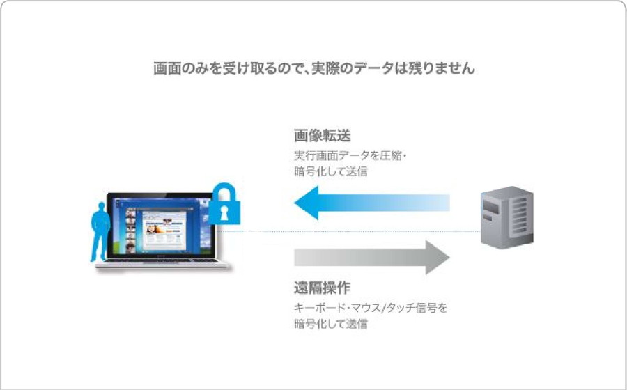手元パソコンの調子が突然悪くなったとしても、その時に作成していたファイルが破損したり消えてなくなったりすることは決してありません。あくまでも、そのファイルが処理されている場所はサーバーの中にあるWindows環境なのですから…。確かに、目の前のパソコンで